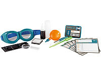 - Inklusive schwarzer Tinte, Plastikbehälter, Experimentierplatte, Lupe, 20 Teststreifen, Pipette, Schutzbrille, Namensschild, 5 Blätter Pergamentpapier, 5 Fall-Karten und deutscher Anleitung