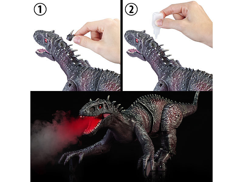 - Mit Lichteffekten: Leuchtet und dampft aus dem Maul